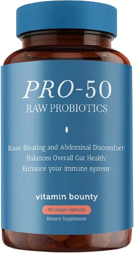 Vitamin Bounty Pro-50 Probióticos 50 mil millones de UFC para mujeres y hombres – Probiótico de 13 múltiples cepas + prebiótico – Suplementos de