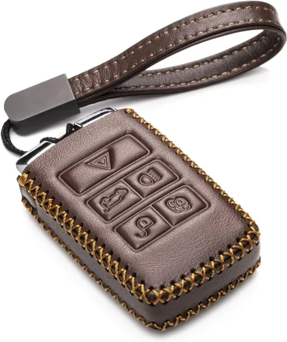 Vitodeco Funda de cuero genuino para llavero inteligente compatible con Land Rover Discovery, Range Rover, Defender 2017 - 2023 (5 botones, marrón)