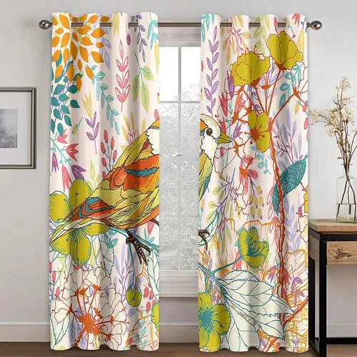 KDGGLUCK Cortina opaca de oscurecimiento para ventana, diseño de pájaro, flores, para dormitorio, sala de estar, cortinas con aislamiento térmico