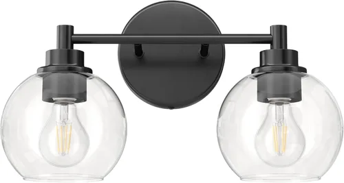 Luz de tocador moderna: La luz de tocador de baño de 2 luces de Vonluce combina cúpulas de vidrio transparente con un acabado negro mate, añadiendo un encanto atemporal a cualquier estilo de interior, desde el moderno chic hasta el tradicional clásico Bases E26 estándar: las bases E26 de nuestra luz de tocador acomodan bombillas de hasta 60W y son compatibles con interruptores de atenuación para un control preciso del brillo (bombillas e interruptores no incluidos) Brilla en cualquier lugar: con sus pantallas de vidrio transparente, nuestra lámpara de tocador emite una iluminación cálida y brillante, creando un ambiente acogedor en dormitorios, salas de estar, baños o pasillos Instalación en minutos: con hardware incluido e instrucciones fáciles de seguir, la instalación es muy fácil una vez que el cableado de su hogar esté listo. Personaliza la apariencia a tu gusto instalando las pantallas de vidrio mirando hacia arriba o hacia abajo Ilumina con confianza: Nuestra lámpara de pared de 14.6 x 9.1 pulgadas, fabricada con metal resistente y vidrio duradero, está diseñada para brindar brillo duradero y mejorar tu experiencia de vida durante años Aviso de variación de color: Pueden producirse ligeras variaciones de color debido a lotes de material, procesos de fabricación o ajustes de pantalla. Estos son normales y no afectan la calidad. Gracias por su comprensión
