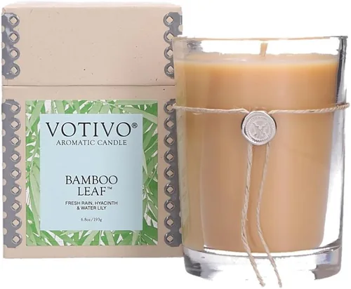 Fragancia: Hoja de bambú DESCRIPCIÓN DE LA FRAGANCIA: El que te ayuda a encontrar el equilibrio. Una mezcla revitalizante de lluvia fresca y exuberantes flores que inspiran paz interior. CREADA PARA TU MOMENTO: Nuestro tamaño más popular, la vela aromática de 6.8 onzas está rebosante de una fragancia única. Cada vela Votivo está meticulosamente elaborada con una formulación patentada de cera de mezcla de soja que garantiza una combustión limpia y uniforme y una experiencia de fragancia memorable y única. USO Y CUIDADO: Quema a la vista y siempre recorta la mecha a 1/4 de pulgada antes de encenderla. Mantenga la vela en una superficie nivelada lejos de corrientes de aire y deje que la cera se acumule en los bordes antes de extinguirla. Evite dejar caer escombros, como recortes de mecha, en la cera y extinga cuando la cera alcance 1/4 de pulgada.
