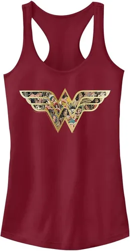 Warner Bros Wonder Woman Foto Fill Logo Slim Fit, sin mangas con espalda cruzada y dobladillo redondo