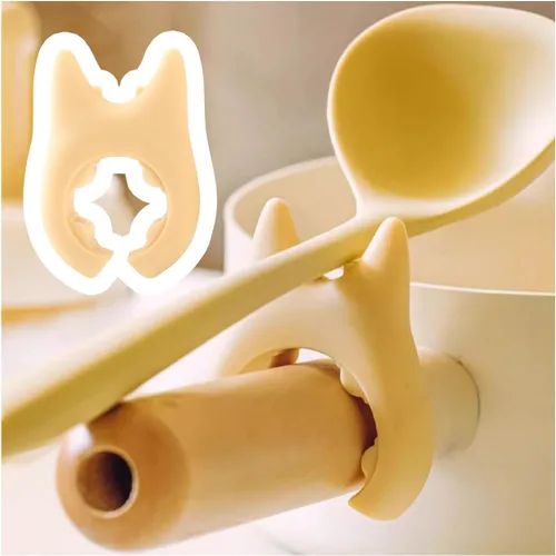 Si no tienes un soporte para cucharas a mano, puedes poner tu cuchara en el borde de la olla y no puedes quemarte la próxima vez que lo agarres. Utiliza soportes de cuchara de silicona para manejar tus utensilios de forma segura, colócalos en las abrazaderas de olla en lugar de en sartenes calientes, y mantén las encimeras limpias Fácil de usar: engancha directamente en el mango de la olla, colocando convenientemente cucharas, espátulas u otros utensilios de cocina a la olla, o al borde de la olla. La tapa se puede levantar ligeramente durante la cocción para permitir que el vapor escape, para espesar tu sopa o guiso Regalo perfecto: el regalo perfecto de cocina para el cocinero casero. Si a tu ser querido le encanta cocinar, regálale este soporte para cuchara de cocina/levantador de tapas Material y tamaño: hecho de silicona de alta calidad de grado alimenticio, no se agrieta ni decolora fácilmente, se puede utilizar con confianza. El tamaño es de aproximadamente 2.44 x 1.69 pulgadas El paquete incluye: 2 soportes para cucharas. Otros productos que aparecen en la imagen no están incluidos