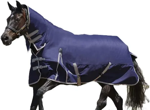 12.70 oz: este combo de manta pesada para cuello y cuerpo ofrece una alta calidez para esos días de invierno extra fríos Impermeable: el material exterior está hecho de un tejido resistente 1200D ripstop y revestimiento repelente al agua para mantener la lluvia y el barro fuera Transpirable: el forro de poliéster Oxford 210D promueve el flujo de aire para que tu caballo se mantenga seco y cómodo Refuerzos: cada lado viene con un refuerzo de hombro tradicional para permitir un movimiento natural Ajustable: totalmente equipado con cierre frontal de doble hebilla, doble cruzado bajo, correas de pierna extraíbles y una solapa de cola estándar