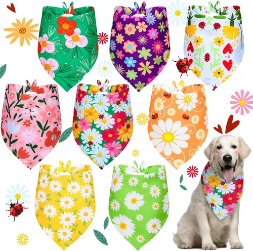 Weewooday 8 bandanas para perro para verano, estampado de flores, baberos triangulares, bufanda, pañuelo, accesorios para perros, gatos, mascotas