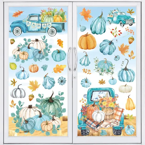 Recibirás: 9 hojas de calcomanías temáticas de otoño en diferentes diseños, varios estilos pueden satisfacer tus necesidades diarias de decoración y también puedes compartirlas con tus amigos cercanos. Cada hoja mide 7.8 x 11.8 pulgadas. Diseño único: estampado con calabazas de estilo acuarela en azul, blanco y naranja, combinadas con camiones, hojas de otoño y hojas de arce, especiales y exquisitas, que pueden ayudarte a crear efectos visuales más agradables. Impresión de doble cara: con diseño de doble cara, puedes ver claramente el patrón desde la parte delantera y trasera del cristal. Y puedes combinarlo libremente para hacer que la decoración sea más rica y usarla para fortalecer el ambiente festivo. Buena calidad: nuestras calcomanías para ventana están hechas de PVC de buena calidad, seguro e impermeable, reutilizable y de corte fino, extraíble y que no se decolora. No hay necesidad de pegamento, simplemente limpia la ventana o el suelo antes de pegarla, limpia la ventana con una toalla húmeda o rocía un poco de agua para pegar las calcomanías directamente. Un poco de agua puede hacer que las calcomanías de ventana se adhieran mejor a la superficie. Amplia gama de usos: nuestros adhesivos estáticos para ventana son perfectos para fiestas de Acción de Gracias, fiestas temáticas de otoño, celebración de cosecha, buena decoración para ventanas, espejos, vitrinas, tiendas, ventanas de restaurantes y otras superficies lisas. Y también se pueden utilizar como un regalo para tus amigos.