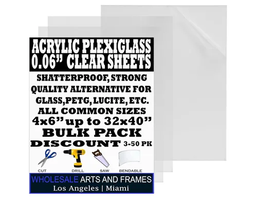 WHOLESALE ARTS AND FRAMES 0.06'' de plexiglás transparente 4x6 Paquete de 3, panel de PET de acrílico de lucita transparente. Vidrio ligero,