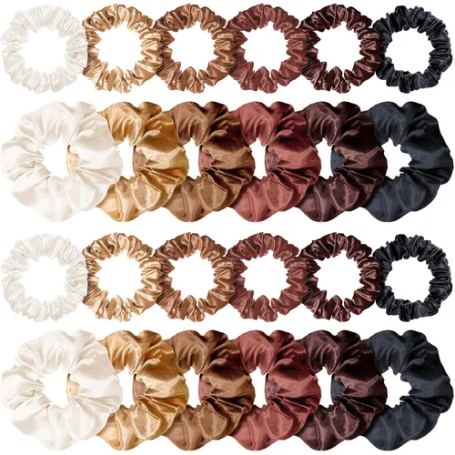 Característica: Buena opción para regalos: Nuestras bandas elásticas de seda son cómodas de llevar y prácticas para sostener tu cabello, buenas opciones para enviar a tu hermana, madre, esposa, novia y amigas en cumpleaños, festivales y aniversarios. Accesorios delicados para el cabello: Estos coleteros de satén pueden adornar muy bien tus peinados, puedes usarlos para crear un moño o coleta, añade una belleza y elegancia adicionales. Especificaciones: Material: satén y bandas de goma. Color: multicolor. Cantidad: 24 piezas El paquete incluye: 24 coleteros de satén para el cabello. Nota: Medición manual, puede haber ligeras diferencias en el tamaño. Los colores pueden variar ligeramente debido a las diferentes pantallas.