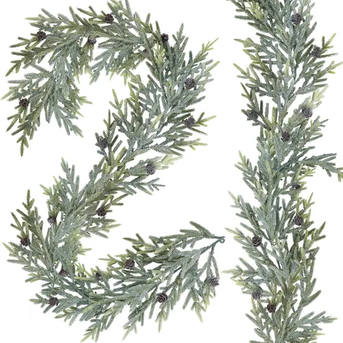 Cantidad: el paquete incluye 2 guirnaldas artificiales de vegetación navideña. Cada guirnalda cuenta con exuberantes y completas ramas de pino de ciprés y salpicadas de mini piñas. Estas guirnaldas de Navidad están cubiertas con purpurina para un aspecto helado invernal. Hay un tallo flexible en un extremo de cada guirnalda para colgar fácilmente. Puedes utilizar una como adorno o combinar dos guirnaldas juntas para hacer que tu guirnalda se vea más grande y llena. Color: Estas guirnaldas navideñas de vegetación sintética tienen un aspecto exterior muy natural que presenta un color verde vibrante con un revestimiento de purpurina. Acentuadas con varias mini piñas, estas guirnaldas de pino son el complemento perfecto para tu decoración rústica de invierno. Colócalos sobre tu repisa o colócalos en una mesa como centro de mesa. Es una gran opción para añadir un toque de vegetación festiva a tus decoraciones navideñas. Tamaño: cada guirnalda de ciprés de pino artificial de Navidad mide aproximadamente 6 pies de largo y 7.8 pulgadas de ancho, pero el ancho puede variar ligeramente. Sus tallos y ramas son flexibles para doblarse, por lo que puedes darles forma para adaptarse a puertas, ventanas, barandillas y cualquier espacio de decoración. Esta guirnalda de abeto añadirá color a tu chimenea, cabecera de dormitorio, escalera, barandilla, entrada, puerta, arco, fondo floral y mucho más. Material: Las guirnaldas artificiales de invierno de ciprés están hechas de plástico. Los tallos de la guirnalda son flexibles y se pueden moldear libremente para satisfacer tus necesidades específicas de decoración. Están cubiertos con polvo de purpurina brillante para imitar el aspecto de helado, añadiendo un exquisito acento navideño. Puedes utilizar y disfrutar de estas hermosas guirnaldas de invierno realistas año tras año, aportando alegría navideña a tu hogar sin la molestia de mantenimiento. Añade un toque de vegetación invernal a tus decoraciones navideñas con nuestras guirnaldas artificiales de pino y piñas de ciprés. Enriquece tu espacio y añádelo a tu boda de invierno, Navidad u otra fiesta de vacaciones. Úsalo como camino de mesa, decoración de fondo, camino de pasillo, decoración de arco, decoración de sala de recepción y más para un exquisito acento navideño. Su aspecto helado los hace perfectos para añadir un toque estacional a tu chimenea, escalera, barandillas, estantes o puerta principal.
