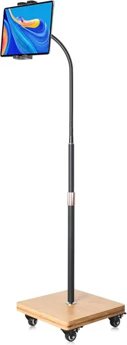 wishacc Soporte de Piso para Tableta para Cama - Soporte de Tableta con Cuello de Cisne con Altura Ajustable y 4 Ruedas, Compatible con iPad mini