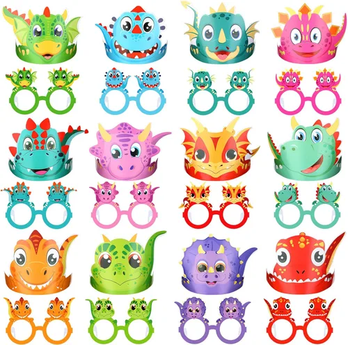 Suficientes suministros de celebración de cumpleaños de dinosaurios: el paquete viene con 48 piezas de decoraciones de celebración de dinosaurios, incluyendo 24 sombreros de papel de dinosaurio en 12 estilos, 24 vasos de dinosaurio en 12 estilos y cuerdas; la cantidad es adecuada para que decores tu celebración temática de dinosaurios haciendo que tu cumpleaños sea más encantador Sólidos y fiables: hechos de cartón de calidad, nuestros anteojos de dinosaurio y sombreros de dinosaurios son resistentes y gruesos, ligeros y bien impresos, no se deforma ni decolora fácilmente, y la cuerda blanca es elástica y suave; todos son cómodos de llevar y no pondrán ninguna carga en tu cabeza, lo que te brinda una experiencia de uso cómoda Tamaños adecuados: estos lentes de sol de dinosaurio miden aproximadamente 5.5 x 5.7 x 4.1 in/5.51 x 5.7 x 4.13 pulgadas, y la corona de dinosaurio es de aproximadamente 9.84 x 5.15 pulgadas, adecuado para la mayoría de las personas, proporcionándoles algunos suministros divertidos en las fiestas temáticas de dinosaurios Seguro de llevar: en comparación con algunos sombreros de plástico o metal que pinchan tu cuero cabelludo, nuestros sombreros de cumpleaños de dinosaurio tienen una superficie lisa y ajustable, no rayan tu cabeza o mano cuando los estás usando, y solo necesitas usarlos como una diadema, conveniente para usar Amplia gama de usos: nuestros lentes de sol y sombreros de cartón de dinosaurio son adecuados para fiestas de dinosaurios, fiestas de cumpleaños temáticas de animales, disfraces de Halloween, fiestas de juegos de rol de animales, cumpleaños, etc., añadiendo un ambiente alegre y emocionante a tu escena festiva