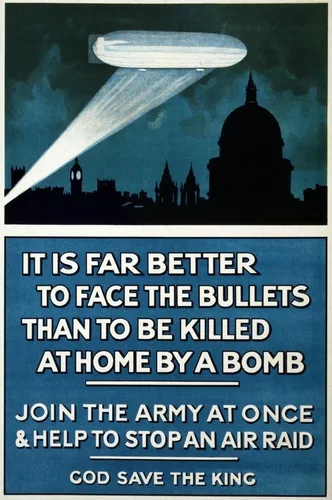 Wwi Póster 1915 Nit Is Far Better To Face The Bullets Than To Be Killed At Home By A Bomb Join The Army At Once & Help To Stop An Air Raid Litografía 1915