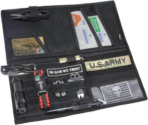 Plegable de doble cara y ajuste universal: plegado a 13.8 x 7 pulgadas, desplegado a 13.8 x 14 pulgadas. Este organizador de visera solar está diseñado más grande para adaptarse a más del 99% de los camiones, SUV y automóviles estadounidenses (incluyendo Ford F-150, Ram, Toyota Tacoma). Su amplio panel Molle ofrece mucho espacio sin comprometer tu campo de visión. Vista sin obstáculos: a diferencia de los organizadores de visera voluminosos, nuestro diseño ligero se coloca plano contra la visera de tu automóvil. Mantiene un campo de visión claro y sin obstáculos mientras mantiene los elementos esenciales al alcance de la mano, promoviendo un entorno de cabina más seguro y ordenado. Organizador de almacenamiento todo en uno: El organizador de automóvil combina un panel de parches de velcro, 3 ranuras transparentes para tarjetas, 4 bucles elásticos para herramientas y 3 bolsillos grandes de malla. Es el organizador de visera definitivo para todo, desde documentos y gafas de sol hasta linternas y herramientas multiusos. Máxima estabilidad: cuenta con 3 correas de gancho y bucle mejoradas, incluyendo una correa central de alta resistencia, para evitar que se hunda o resbale. Este organizador de visera de automóvil se fija de forma segura a la visera solar de tu automóvil, sosteniendo firmemente el equipo táctico más pesado y los accesorios para automóviles con confianza. Costuras duraderas y reforzadas: construido con poliéster 1000D de doble capa, este organizador de visera de camión está diseñado para durar. El material resistente y las costuras reforzadas garantizan que se mantenga estable y sin hundimientos, asegurando tu equipo de forma segura para la conducción diaria, viajes por carretera o aventuras fuera de carretera.