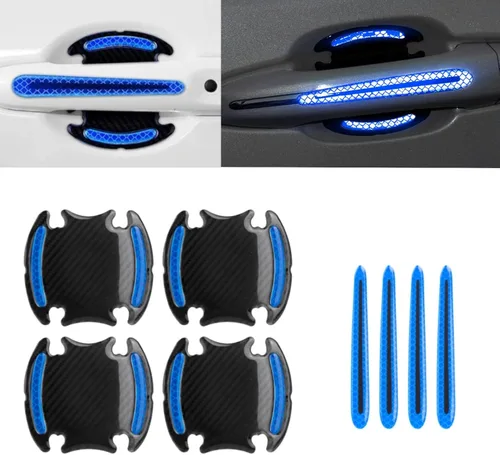 【Específico】8 piezas de resina epoxi de alta calidad 3D reflectante azul fibra de carbono para manija de puerta, protección contra rayones. Está hecho de resina epoxi de alta calidad con cierto grosor, suave y cómoda, exquisita mano de obra, resistencia a la abrasión sin igual y rendimiento de amortiguación. Función: alto rendimiento reflectante, advierte a otros conductores junto a tu automóvil, hace que tu querido automóvil sea mucho más seguro en la noche oscura. También puede proteger eficazmente la manija de la puerta y el cuenco de la puerta, evitar arañazos y colisiones, proteger la pintura, no cambiará la apariencia de tu querido automóvil. Fácil de instalar: conveniente de instalar, limpiar la ubicación, quitar la película protectora en la parte posterior del producto, ajustar la posición y presionar hacia abajo para completar la operación. Con una fuerte adherencia, se puede utilizar por última vez sin dejar rastros y no dañará la pintura de la superficie del automóvil. Ajuste universal: compatible con la mayoría de los modelos de automóvil. Adecuado para la mayoría de automóviles, vehículos todoterreno, camiones, SUV, etc. Nota: comprueba la forma de la manija de la puerta lateral de tu automóvil como se muestra en la imagen y asegúrate de tener espacio para instalar la película protectora.