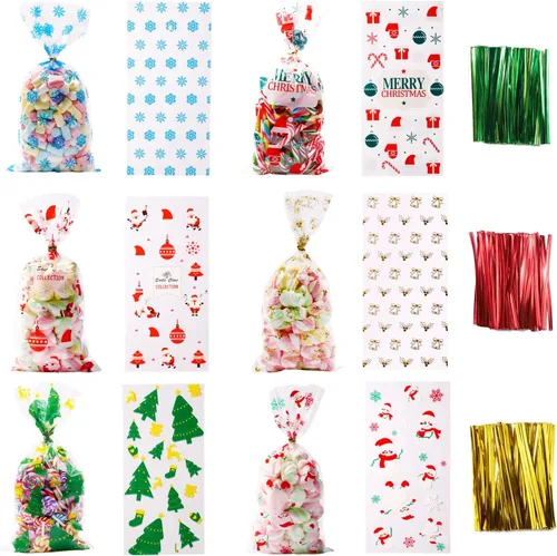 {♥ Todo en un solo paquete}: 120 bolsas de celofán de Navidad, vienen con 150 lazos giratorios, varios diseños para elegir y satisfacer tus necesidades para usar en Navidad {♥Varios diseños}: las bolsas de dulces de Navidad están impresas con diferentes elementos de Navidad, como copo de nieve, Papá Noel, calcetines de Navidad, bastón de caramelo, etc. Vívido y creativo, añade un ambiente festivo Dimensiones ideales: cada bolsa de cono de Navidad mide aproximadamente 10.6 x 5.1 pulgadas, cada lazo mide 4.7 pulgadas de largo, tamaño ligero para que lo uses {♥Material seguro}: las bolsas de dulces de Navidad están hechas de polipropileno, no tóxico e insípido, el lazo giratorio está hecho de poliéster y alambre de hierro, duradero y fácil de torcer Amplia aplicación: las bolsas de dulces de Navidad son adecuadas para fiestas de Navidad, fiestas de vacaciones, bodas, fiestas de cumpleaños, ceremonias o vida cotidiana, también se pueden utilizar para dulces, galletas, juguetes pequeños, aperitivos, etc