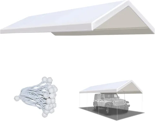 La parte superior del toldo YardGrow se adapta a la mayoría de marcos de toldo de 12 x 20 Fabricado con tela duradera y ojales fuertes para una resistencia fiable al desgarro. Asegura a tu marco de refugio existente con cuerdas elásticas. Es una unidad perfecta para hacer que tu cochera sea brillante y refrescante. Uso comercial o recreativo: refugio de automóviles, fiestas, bodas, etc.
