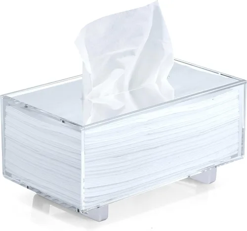 YoBa Soporte de caja de pañuelos acrílico grueso Dispensador de caja de pañuelos rectangular con patas de aluminio plateadas en plata para baño,