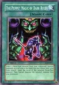 Yu-Gi-Oh! es un juego estratégico de cartas intercambiables en dos jugadores en duelo usando una variedad de cartas de monstruo, hechizo y trampa para derrotar a los monstruos de su oponente y ser el primero en dejar caer los puntos de vida del otro a 0. Nombre de la tarjeta: La magia de la marioneta de la regla oscura Tipo de carta: hechizo normal Número de tarjeta: LOD-013 Conjunto: Legado de la Oscuridad Atributo: Hechizo Código de acceso: 40703393 Texto de la carta: Selecciona 1 monstruo de Tipo Demonio de tu Cementerio. Elimina del juego monstruos en tu lado del campo cuyos niveles totales sean exactamente iguales al Nivel del monstruo de Tipo Demonio seleccionado. Luego Invoca de Modo Especial al monstruo seleccionado desde tu Cementerio.