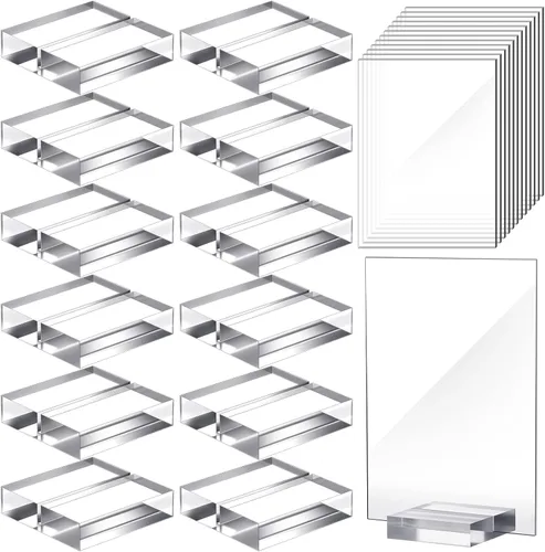 Satisface tus demandas cambiantes: hay 12 piezas de carteles en blanco para bodas y 12 tableros de acrílico transparente en cada paquete, 24 piezas en total, que son suficientes para satisfacer tus necesidades de bricolaje hechos a mano, también puedes compartir con tu familia y amigos para experimentar la diversión del bricolaje Servicio prolongado: el soporte acrílico con hojas está hecho de acrílico, con bordes pulidos, seguro y útil, que no se deforma ni rompe fácilmente para un uso a largo plazo; cada letrero de mesa tiene una película protectora para evitar arañazos, retira la película protectora antes de usar Comprueba los tamaños cuidadosamente: hay 2 tamaños diferentes de letreros acrílicos en blanco, disponibles en 4 x 6 x 0.08 pulgadas y 5 x 7 x 0.08 pulgadas. Consulta la tabla de tallas en la pantalla de la imagen, comprueba tu tamaño antes de realizar el pedido y elige el tamaño adecuado Simple pero elegante: con un aspecto simple pero elegante, estos letreros de mesa para boda se adaptan a hacer números de mesa, placa de identificación, horario, decoraciones o proyectos de manualidades; puedes utilizar la mayoría de bolígrafos de pintura a base de agua o aceite para dibujar o escribir lo que quieras, y obtener tus propios trabajos Adecuado para varias ocasiones: estos soportes de mesa para letreros serán un maravilloso regalo de inauguración de la casa para tu amigo o ser querido, y puedes estar seguro de ganar su aprecio. Una opción de regalo inteligente y agradable también para bodas, día de San Valentín, compromiso, aniversarios, vacaciones y mucho más