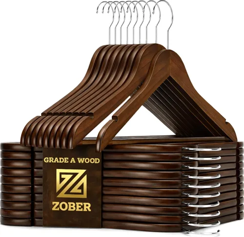 Zober - Juego de 20 perchas de madera antideslizantes y resistentes con barra y ranuras para utilizar en el clóset y colgar abrigos, chaquetas,