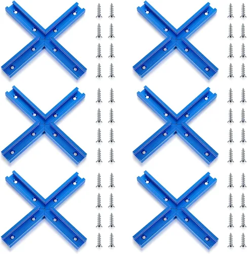 Embalaje completo: experimenta la comodidad con los 6 juegos de kit de intersección de pista en T azul, completo con 8 tornillos cada juego, proporcionando un total de 48 tornillos; aprovecha al máximo este kit para tus reemplazos diarios y compartir Materiales de calidad: fabricado con aleación de aluminio de calidad, estas pistas de aluminio garantizan la longevidad; la oxidación del ánodo añade un toque elegante mientras mejora su resistencia contra la corrosión; este kit garantiza que permanecerá fuerte, no es fácilmente propenso a romperse, deformarse o doblarse, manteniendo su color y forma incluso después de un uso prolongado Información de tamaño: cada pista en T azul tiene un tamaño de aproximadamente 3 pulgadas de largo x 3/4 pulgadas de ancho x 3/8 pulgadas de profundidad, con 8 agujeros preperforados en cada juego para un fácil montaje; el espacio del agujero de los tornillos es de aproximadamente 1-5/8 pulgadas y los bordes se extienden hasta aproximadamente 1/2 pulgadas de largo; comprueba el tamaño antes de comprar Diseño fácil de usar: estas pistas en T de aluminio vienen preperforadas para la instalación, lo que facilita su uso al crear accesorios y dispositivos fijos; esta compatibilidad se extiende tanto a máquinas de carpintería como a máquinas de procesamiento de metal, ofreciendo versatilidad en la función, ahorrando tiempo y esfuerzo con nuestro equipo precortado y fácilmente utilizable Diversas aplicaciones: estos accesorios de riel en T encuentran su uso en una variedad de plataformas, desde sierras de mesa, mesas de corte oblicuas, camas de perforación, mesas de fresado, mesas de montaje, plataformas CNC y fresadoras; también se pueden aplicar a otros contextos como sistemas de kayak, estantes ajustables, carriles de bicicleta, bancos de trabajo, bancos de carpintería y más; te ofrece una amplia variedad de aplicaciones