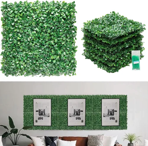 ¿Para qué sirve Paneles de pared de césped artificial, 12 paneles de madera de boj de 10 x 10 pulgadas, paneles de pared de seto de boj para pared de vegetación?
